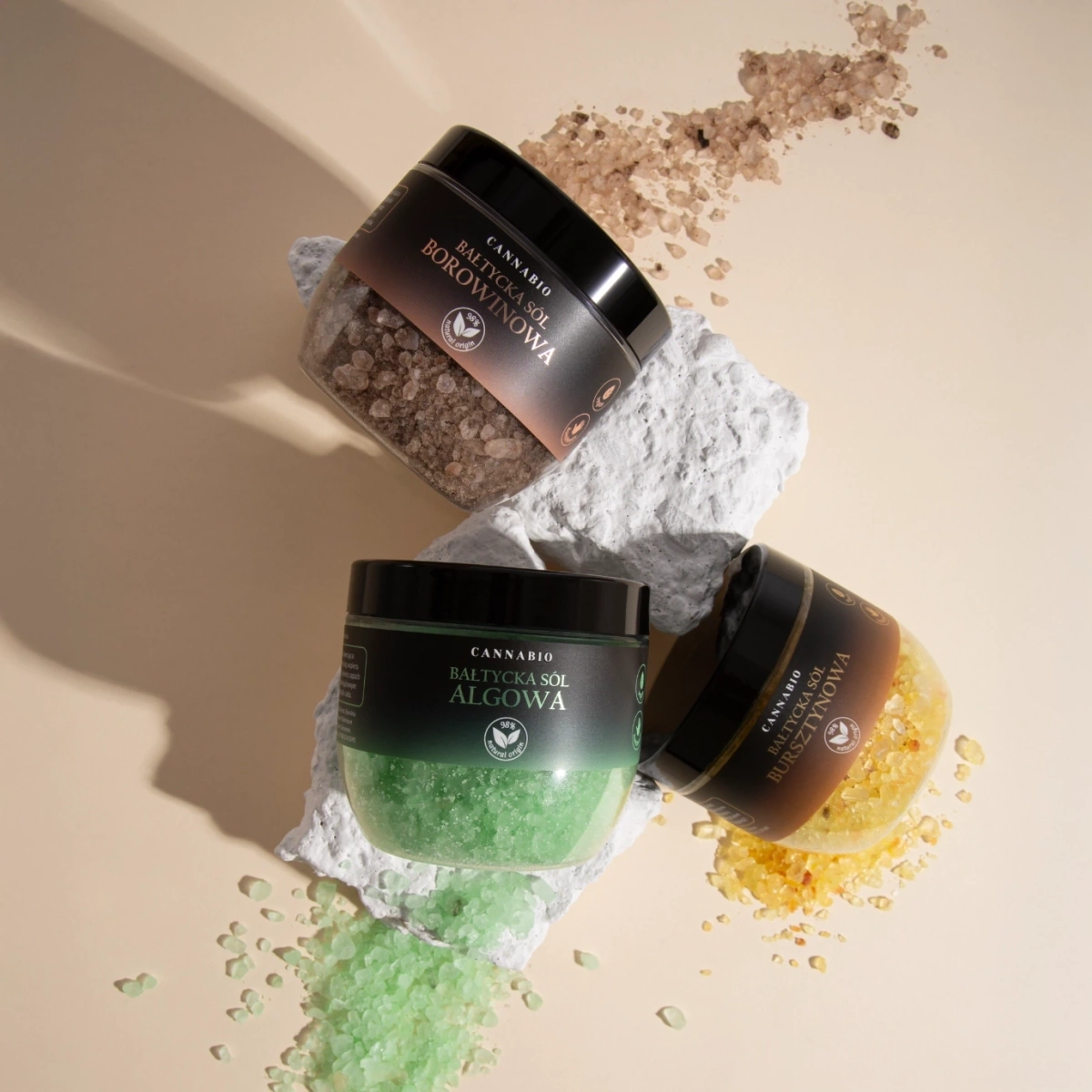 Odkryj Mineralne Sole Cannabio – luksusowy sposób na domowe SPA i głęboki relaks. Wytwarzane ręcznie w Polsce z najwyższej jakości soli kopalnianej, zawierają 98% składników pochodzenia naturalnego, dbają o skórę i zmysły. Ich wyjątkowa formuła łączy siłę natury z pielęgnacyjnymi właściwościami składników aktywnych, takich jak wyciąg z alg, macerat olejowy z bursztynu i borowina, które pomagają odprężyć ciało, zregenerować skórę i przywrócić jej zdrowy wygląd.